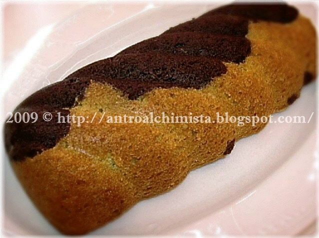 Distribuire metà del composto alla vaniglia da una parte e metà di quello al cacao dall’altra.